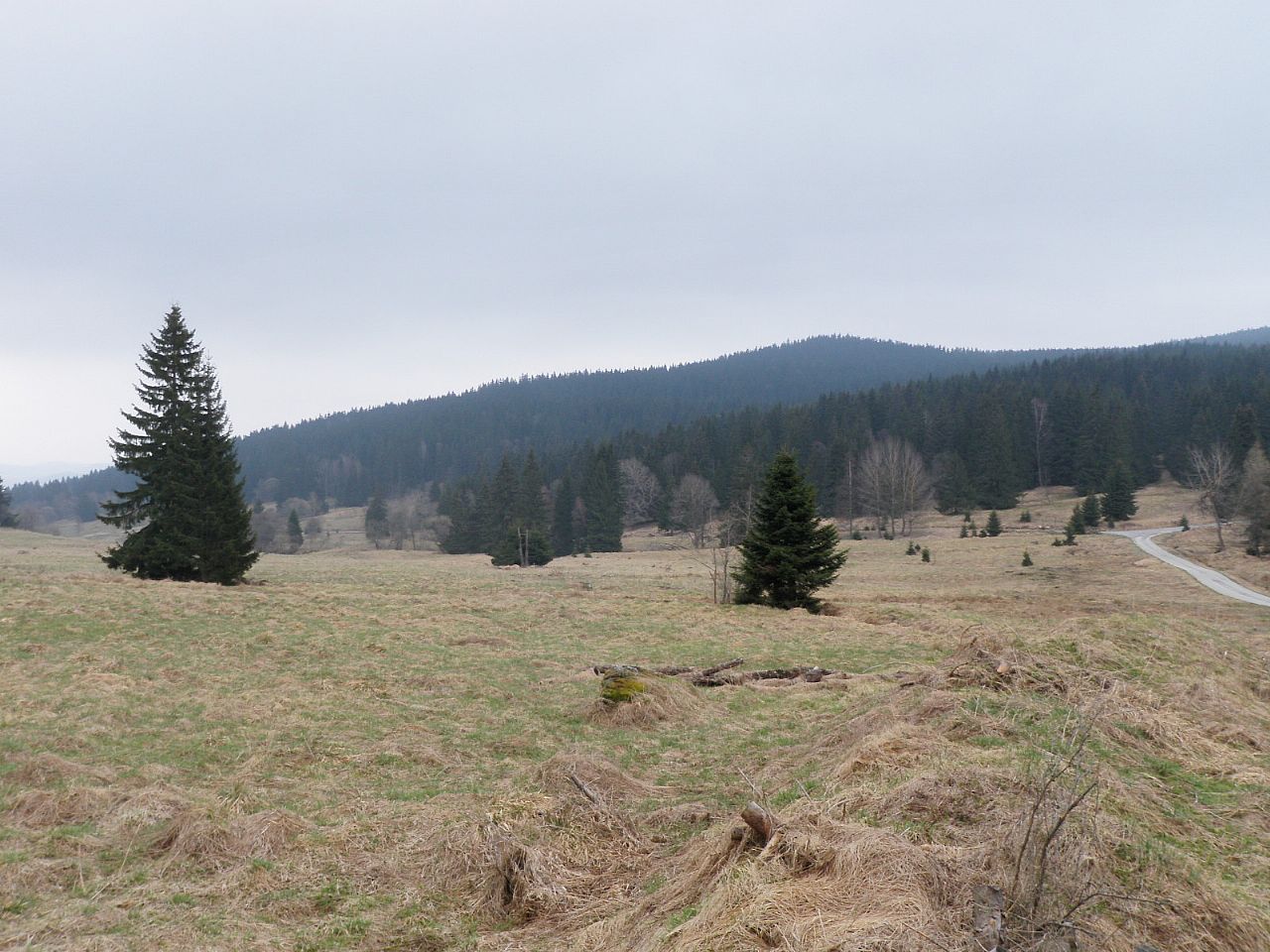 Křemelná (HLV 164; 1125 m) ze silnice vedoucí z Velkého Boru do bývalých Stodůlek.