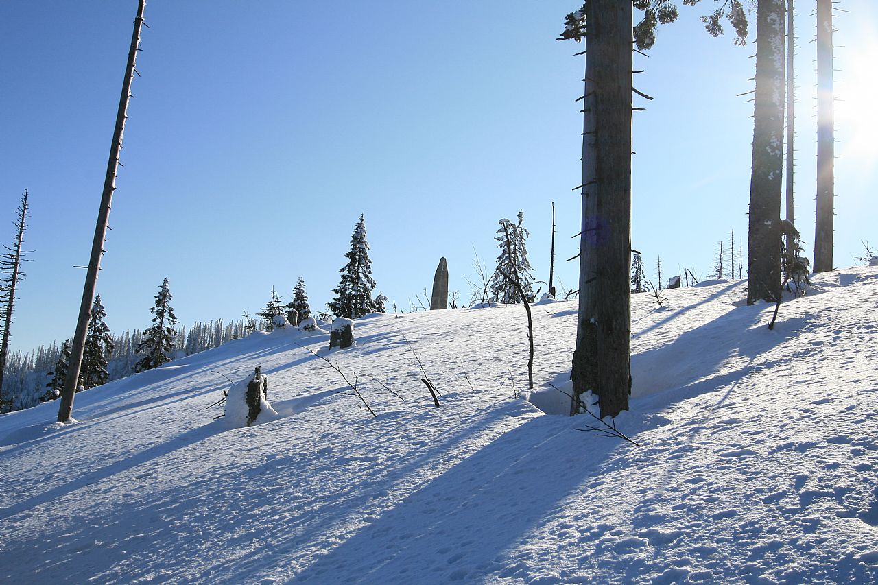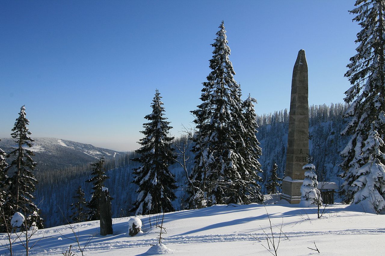 U Stifterova pomníku na severním svahu Plechého (HLV 21; 1378 m).