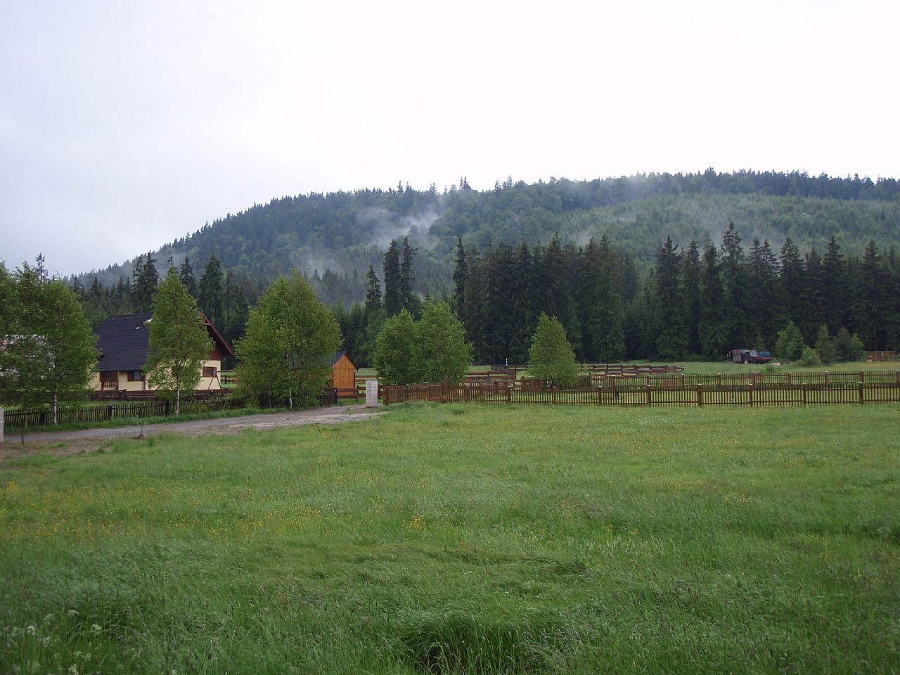 Sokol (HLV 80; 1253 m). Pohled od okrajových partií Horské Kvildy, z míst, kudy vedla historická Zlatá stezka.