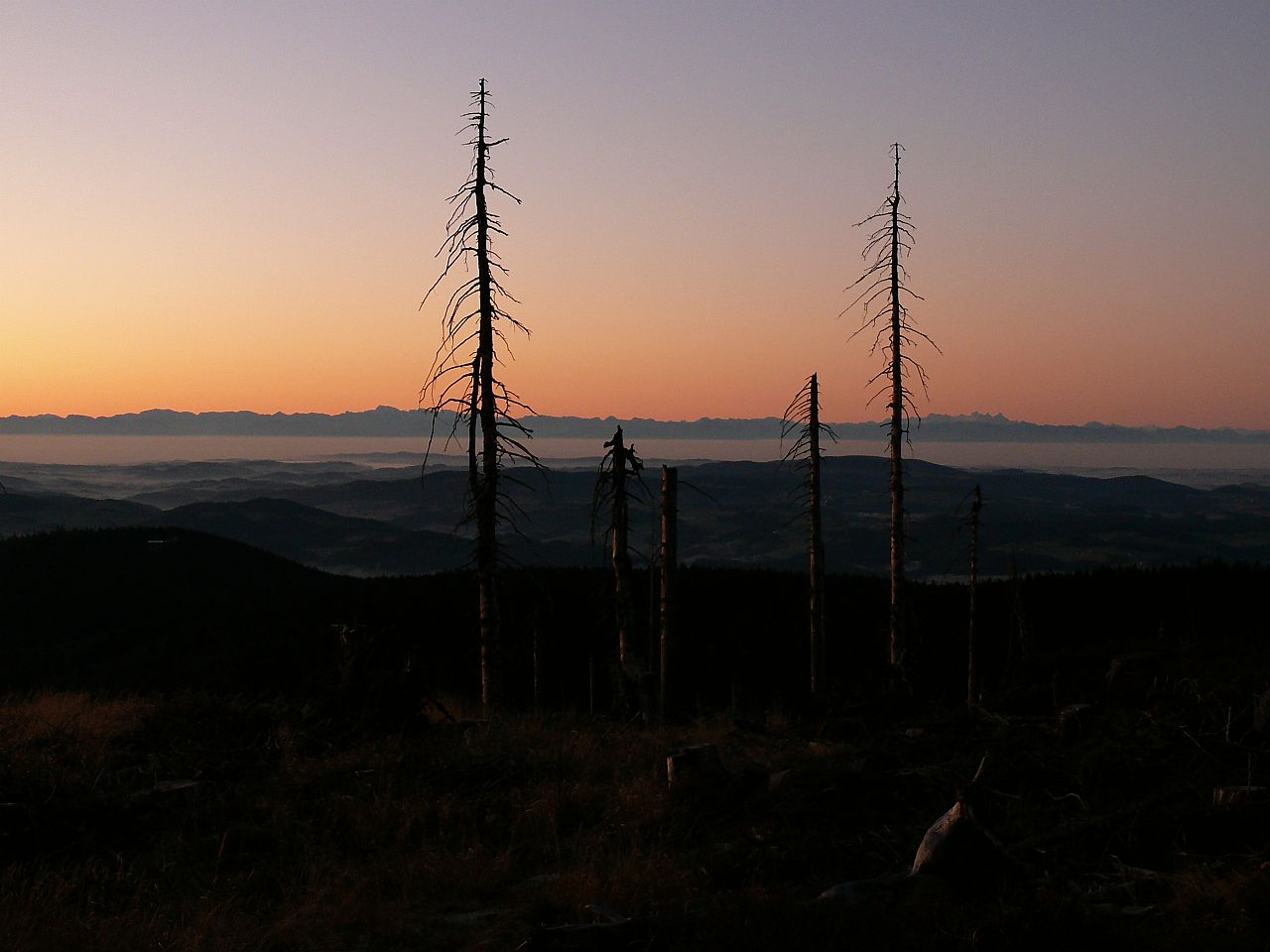 Západ slunce na z vrcholu Plechého (HLV 21; 1378 m).