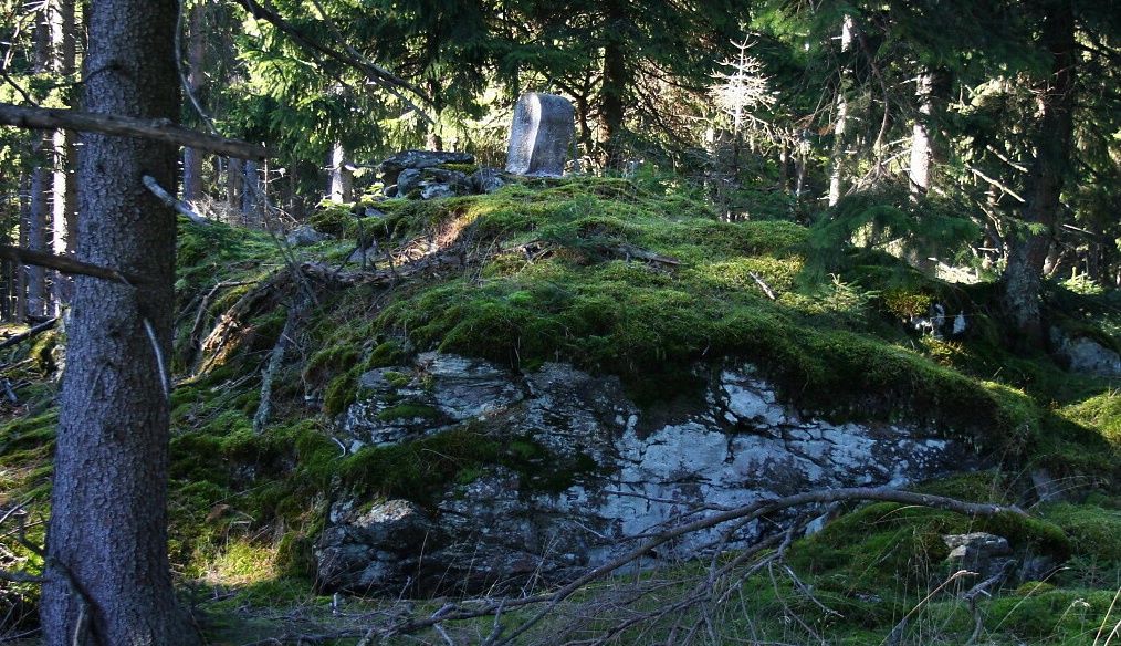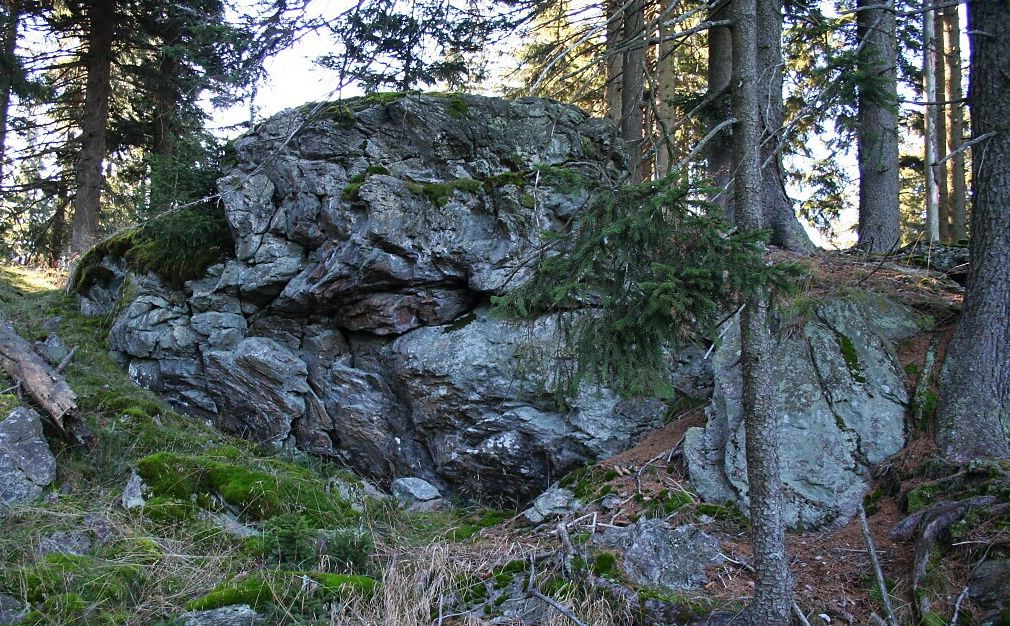 Kamenný patník při cestě na vrchol Větřína (HLV 133; 1178 m).
