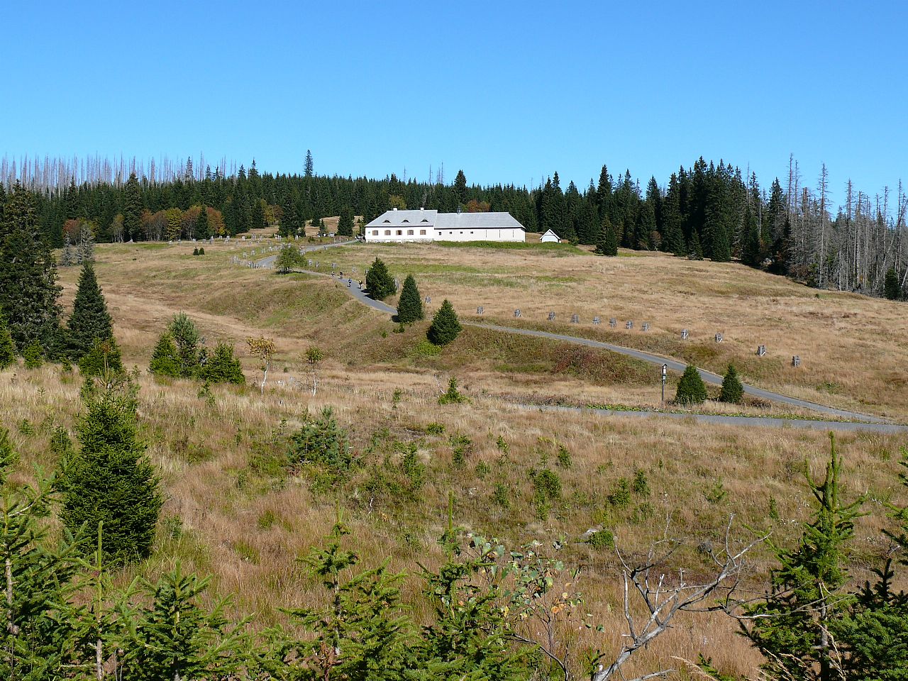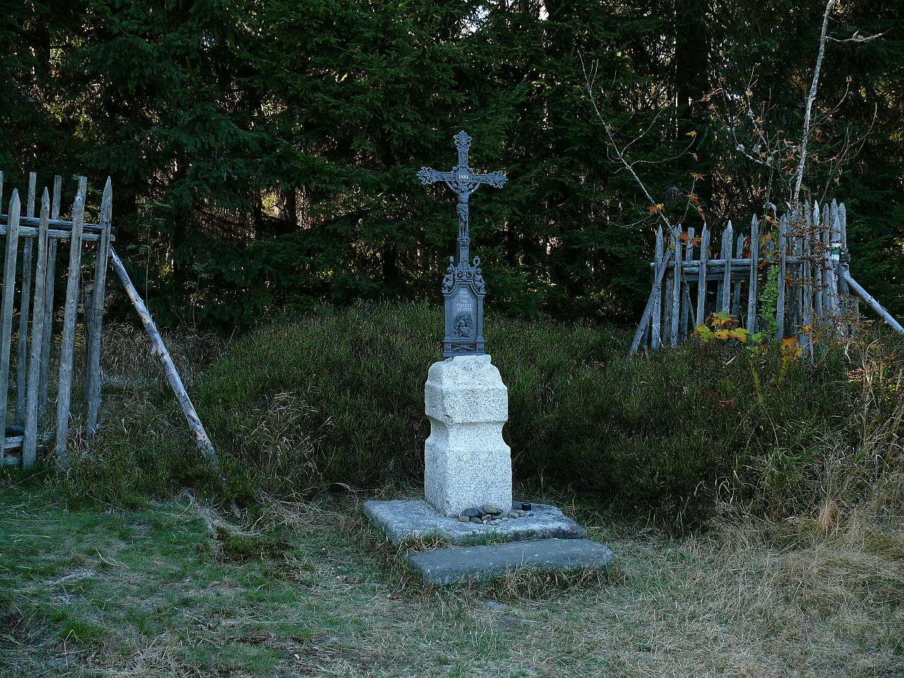 Na jižním okraji sedla mezi Knížecím stolcem (HLV 94; 1236 m) a Lysou (HLV 96; 1228 m), na křižovatce lesních cest, bylo zřízeno upravené prostranství s žulovým obeliskem.