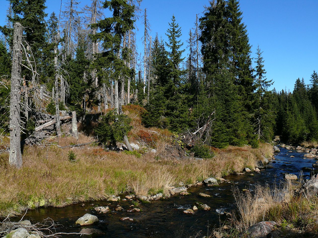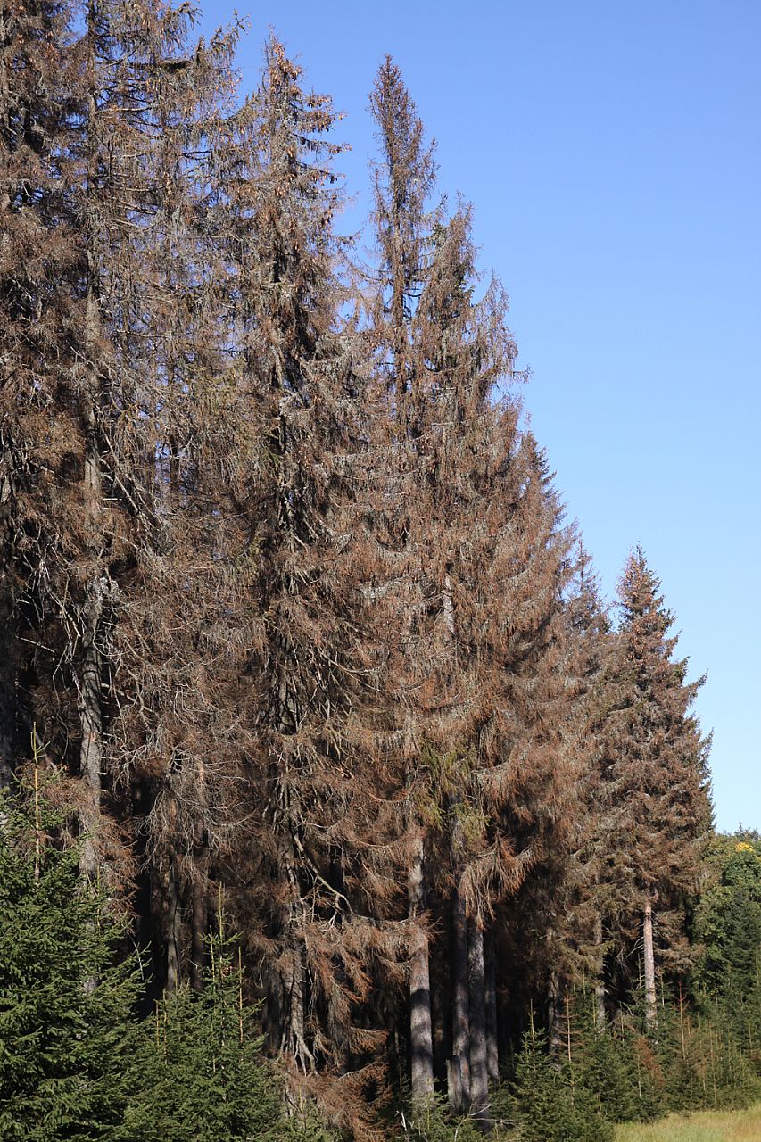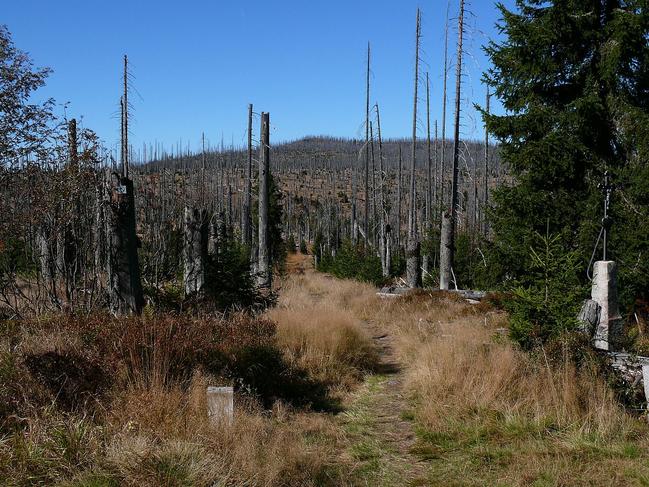 Odumřelý les na svazích Oblíka (HLV 100; 1227 m).