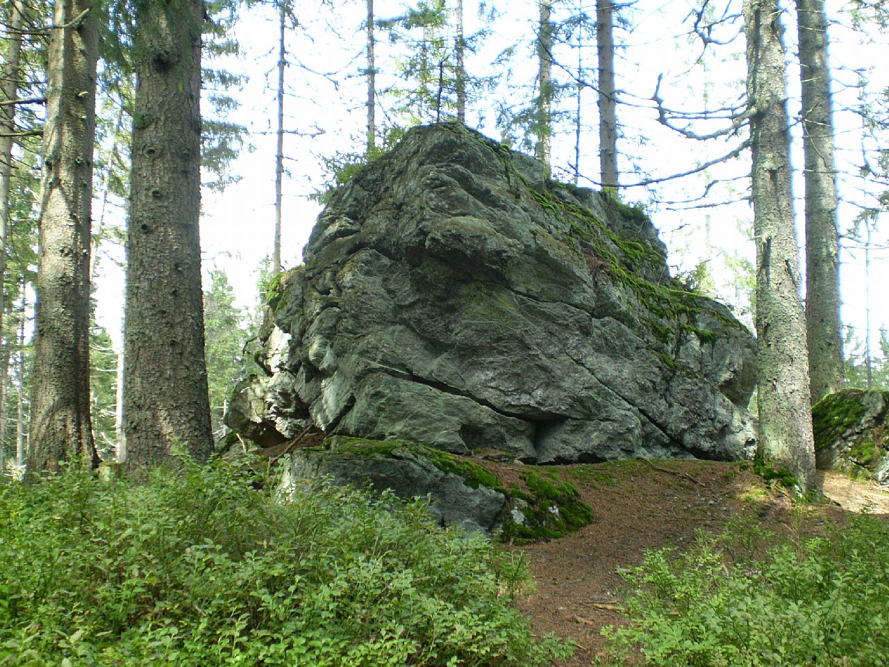 Jeden z mnoha balvanů na vrcholu Lovčí skály (VV 87a; 1165 m).
