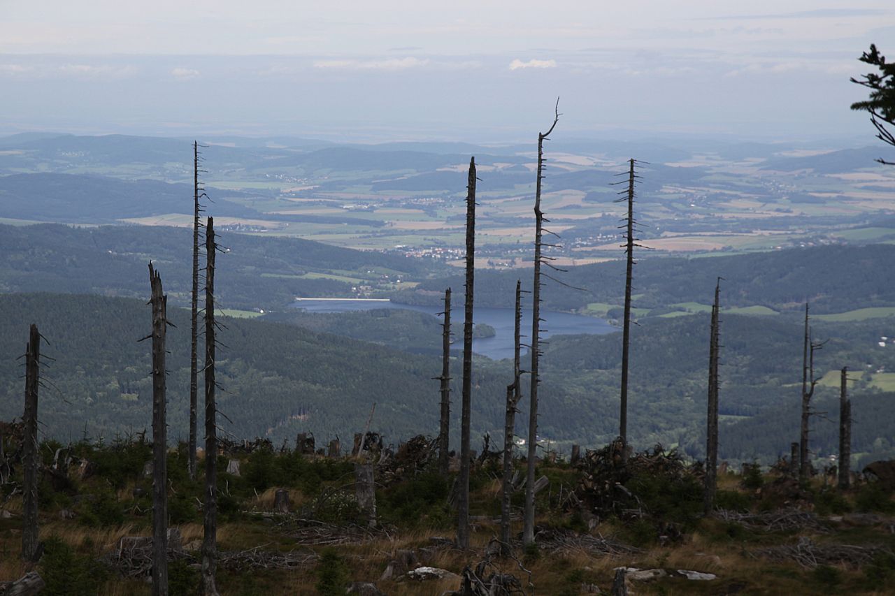 Pohled na nýrskou přehradní nádrž na Úhlavě z vrcholu Svarohu (HLV 42; 1333 m).
