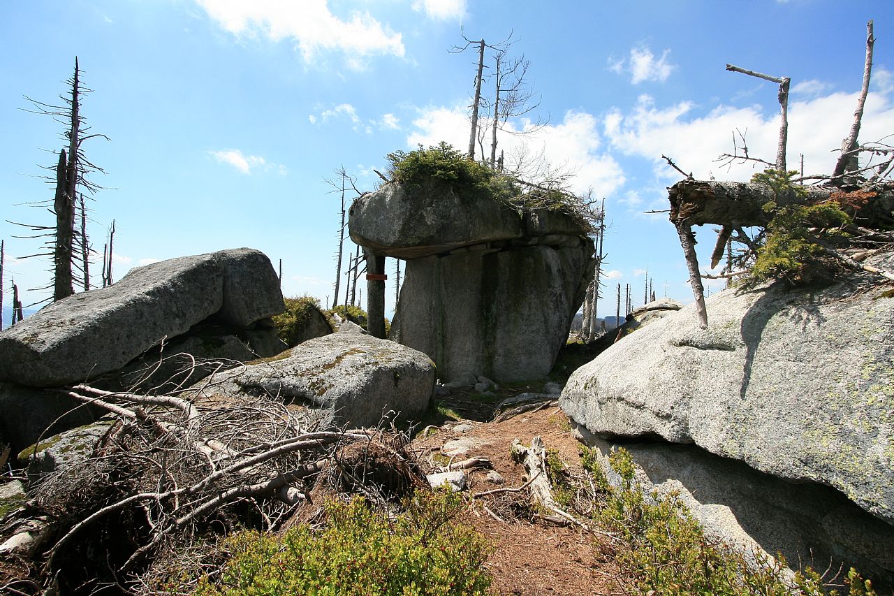 Těsně vedle silnice mezi obcemi Filipova Huť a Horská Kvilda se nachází zajímavě tvarovaný balvan připomínající vojenský bungr. Něbližší tisícovkou je Sokol (HLV 80; 1253 m).