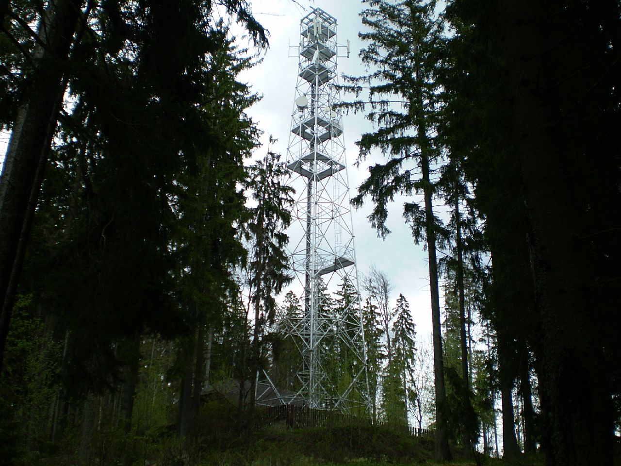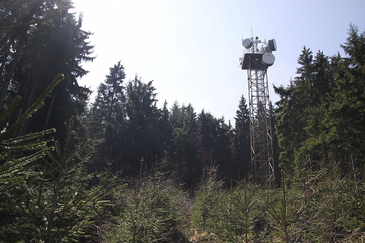 Věž vysílače GSM je asi 100 m S směrem od vrcholu Malého Prenetu (HLV 370; 1006 m).