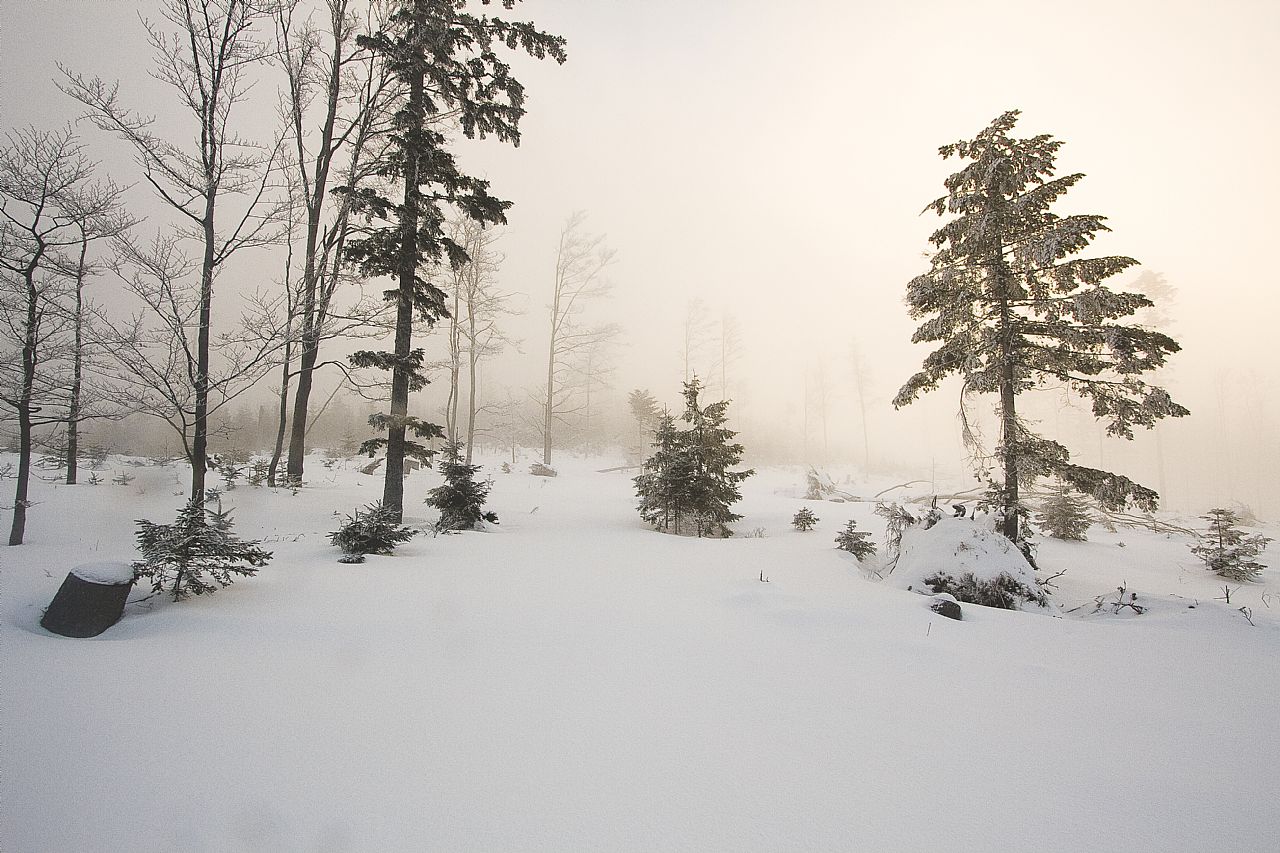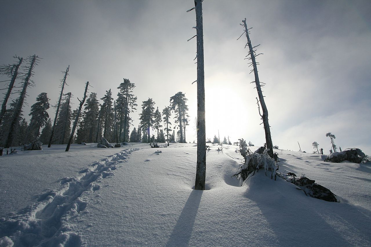Dlouhé stráně (HLV 32; 1353 m) za inverzního počasí.