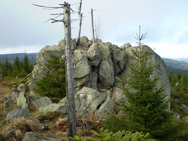 Vrcholová skála Malé Mokrůvky - V vrcholu, nového vedlejšího vrcholu Malé Mokrůvky (HLV 44; 1330 m).
