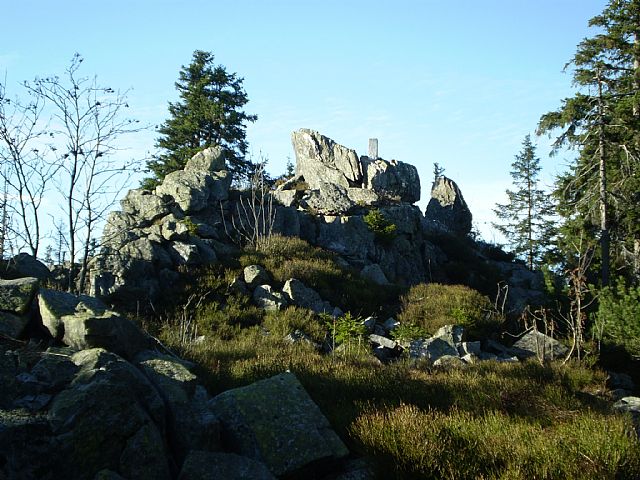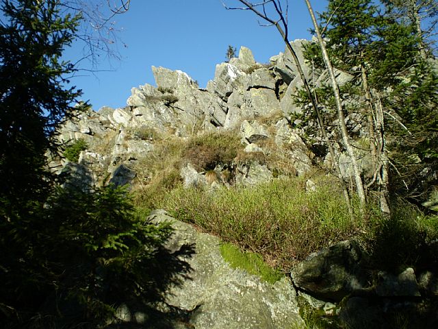 Mohutné skály na vrcholu tisícovky Velký Kokrháč (HLV 95; 1229 m).