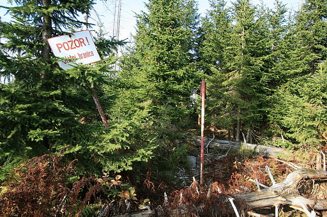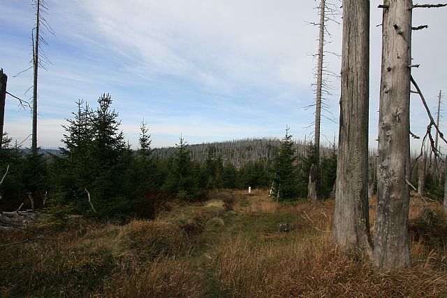 V sedle mezi Velkou Mokrůvkou (HLV 25; 1370 m) a bavorským Luzným.