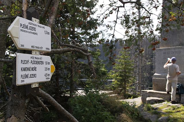Romantická zážitková stezka od Plešného jezera k Stifterovu pomníku vede oblastí spontánní obnovy lesa na Plechém (HLV 21; 1378 m).