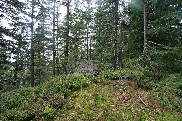 Velmi ploše oblá vrcholová část Jeleního vrchu (VV 80a; 1176 m) - foto zřejmě z jejího nejvyššího bodu.