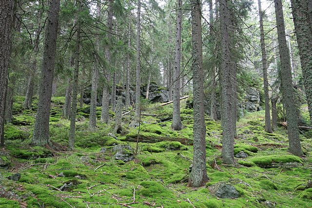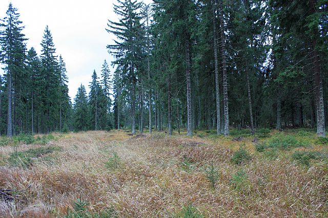 Pod vrcholem Tetřeva (HLV 77; 1260 m) z jihu.