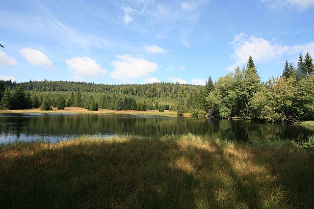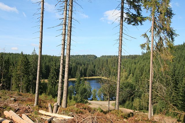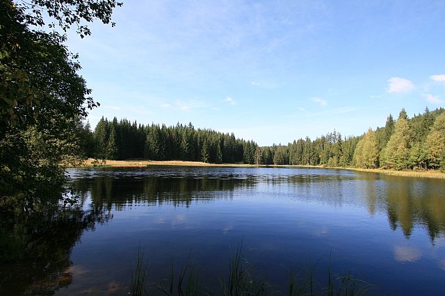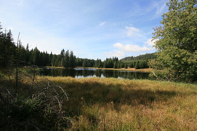 Žďárské jezírko v sedle pod jihozápadním svahem tisícovky Jelení hora - Z vrchol (HLV 305; 1034 m).