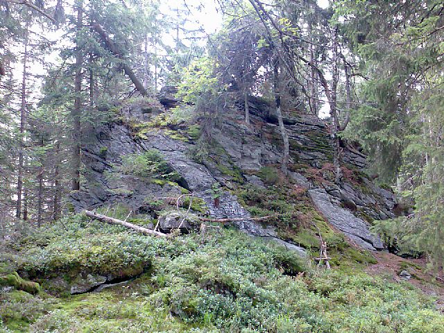 Vrcholová skála na východním okraji hřbetu tisícovky Jelení slať - J vrchol (VV 290a; 1028 m).