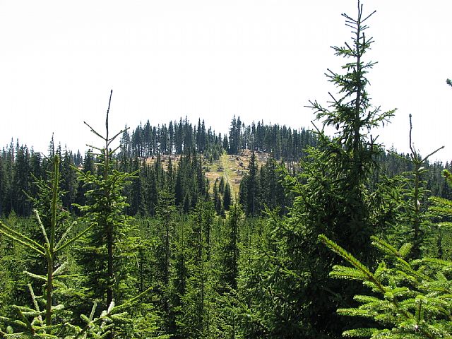 Jelení slať - S vrchol (HLV 290; 1048 m) z mělkého jižního sedla.