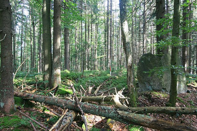 Kamenice na západním okraji vrcholové části Žďárecké hory (HLV 242; 1065 m).