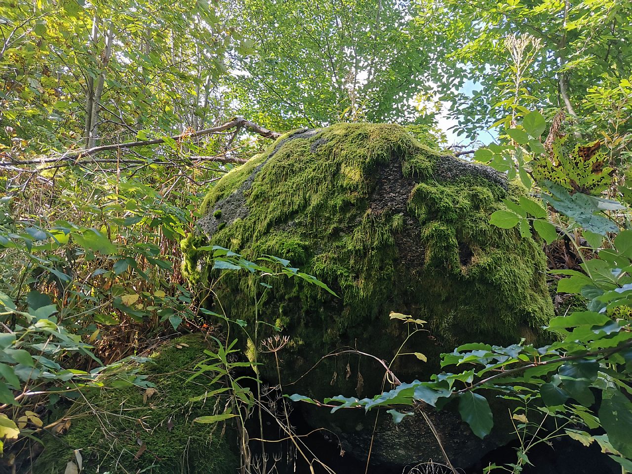 Ve vrcholové partii tisícovky Kapradinec - J vrchol (HLV 387; 1001 m) jsou pár metrů od sebe dvě vyvýšená místa, jedno se skálou (a kamennou mohylkou) a druhé (toto) porostlé vegetací.