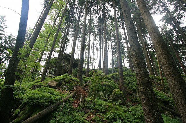 Skály na Medvědím vrchu (HLV 105; 1216 m) patří Krakonošovi.