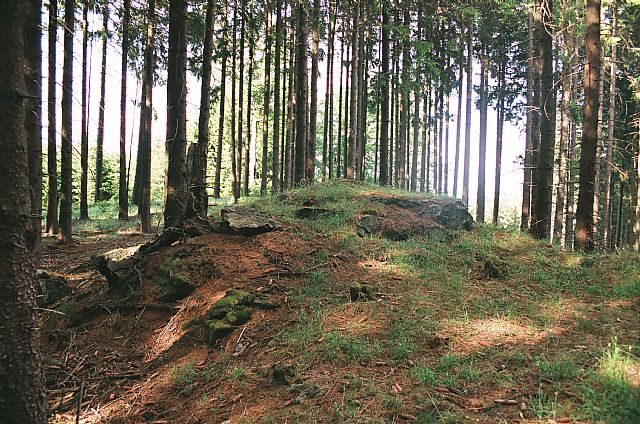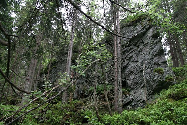 Mohutná Holubí skála na S svazích Holého vrchu (HLV 64; 1295 m).