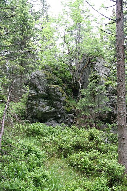 Skalnatý spočinek v blízkosti vrcholu Větřína (HLV 133; 1178 m).