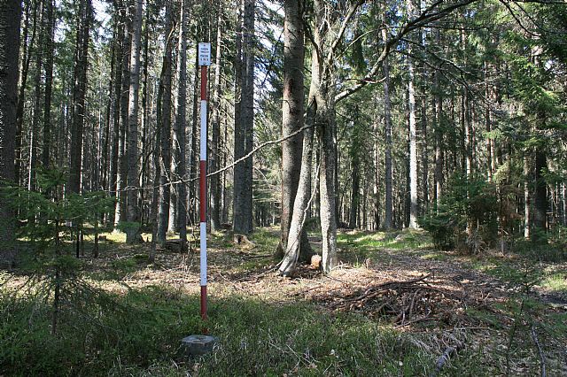 Posed na okraji paseky ve střední části vrcholové plošiny Perninského vrchu (HLV 393; 1000 m).