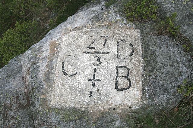 Na skalnatém hřebeni Ostrého (HLV 70; 1291 m) je mnohdy státní hranice vytyčena nikoli klasickými patníky, ale značkami, vytesanými do skály.