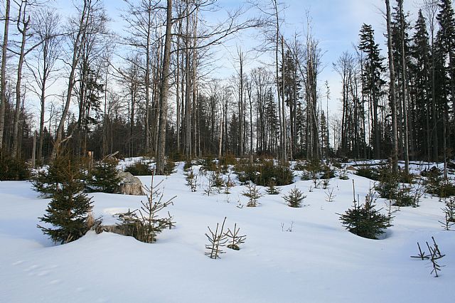 Březník (HLV 365; 1007 m) od Velkého Boru mezi Prášily a Srním.