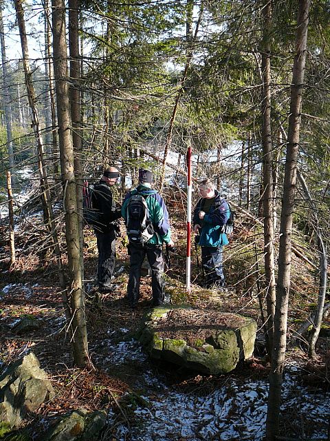 Geodetický bod na Větrném (HLV 259; 1051 m) s několika účastníky Boletic 2008.