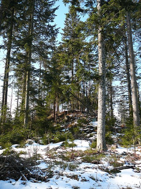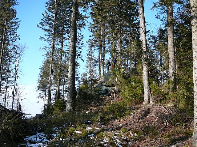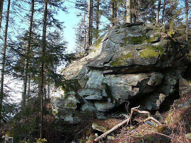 Vrcholová skála Doupné hory - SV vrcholu I (HLV 258; 1052 m) vytváří na J straně několikametrovou stěnu.