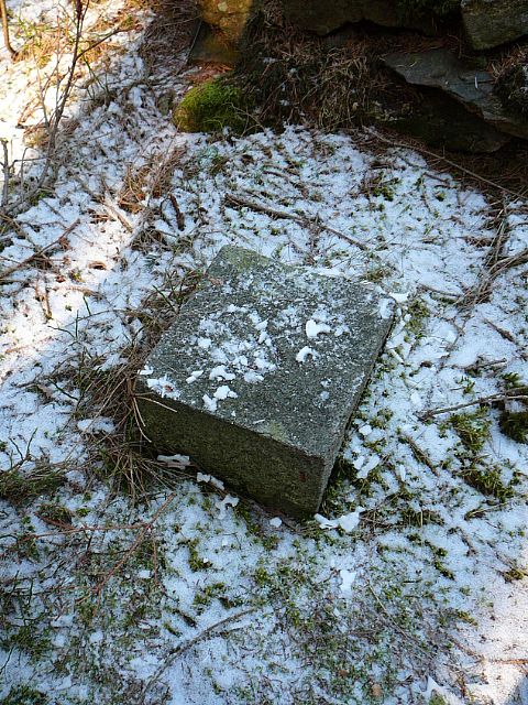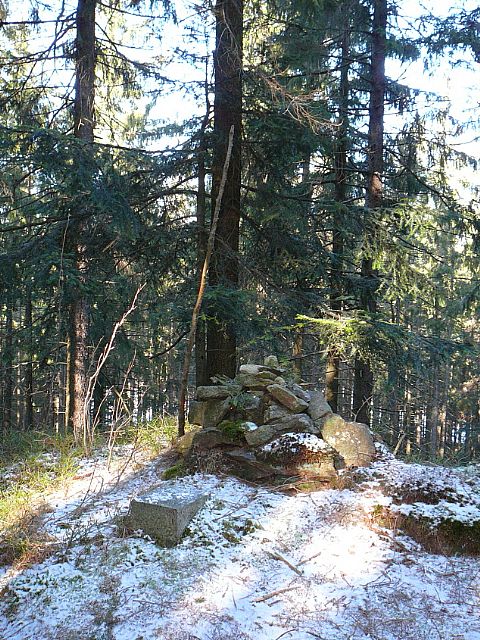 Kamenný kříž u lesíka na J okraji vrcholové plošiny Doupné hory (VV 258a; 1029 m).