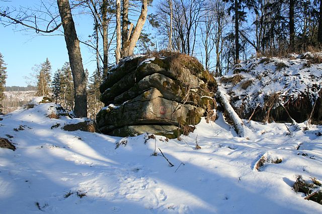 Nejvyšším bodem Křemenné (HLV 207; 1085 m) je tento balvan.