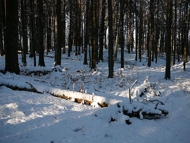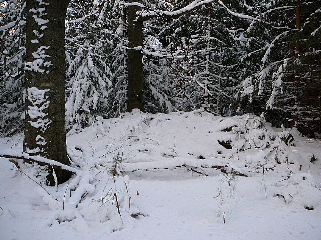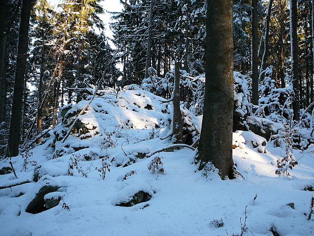 Přes vrchol tisícovky Radvanovický hřbet - JZ vrchol II (HLV 331; 1020 m) probíhá starý snos kamenů.