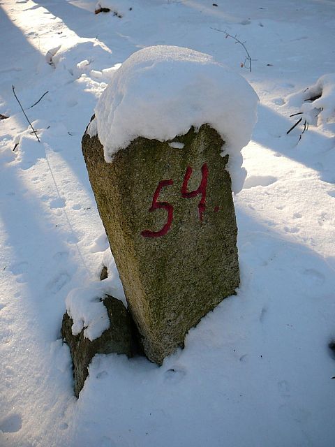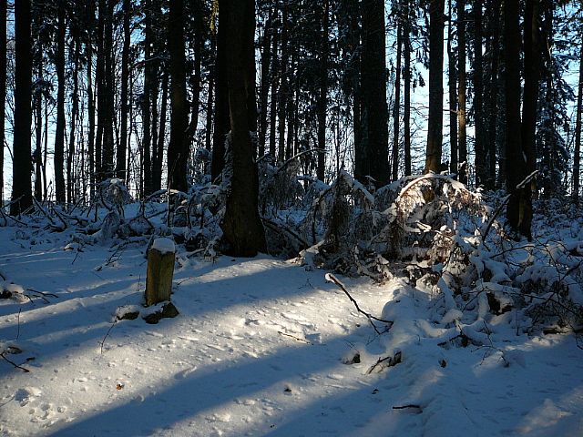 Patník ve vrcholové části tisícovky Radvanovický hřbet - JZ vrchol II (HLV 331; 1020 m).