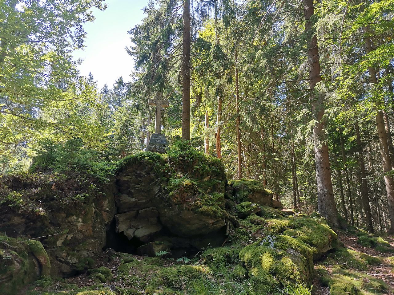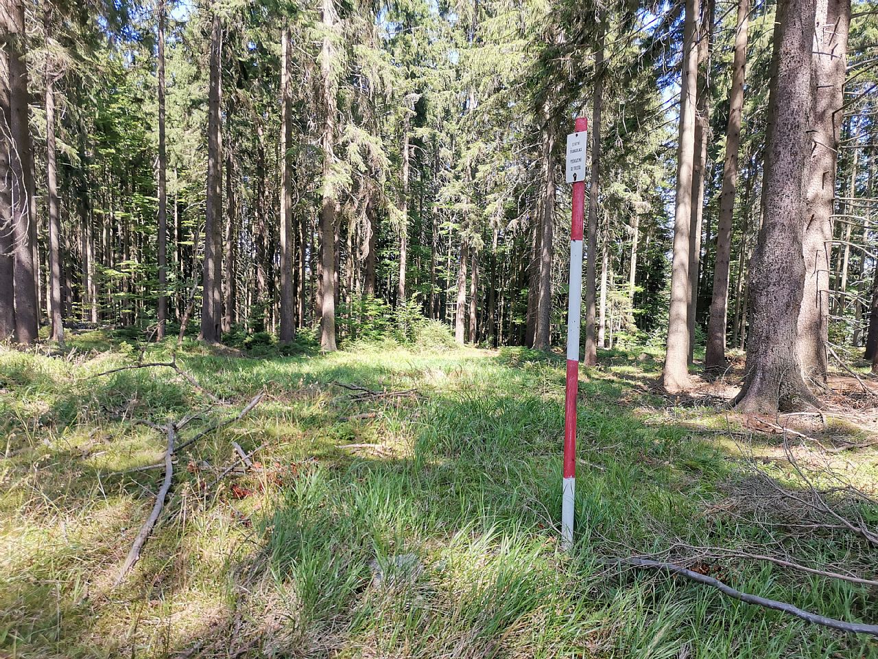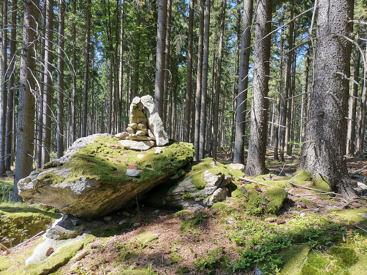 Pomník Adalberta Stiftera je už kousek od vrcholu Plechý (HLV 21; 1378 m).
