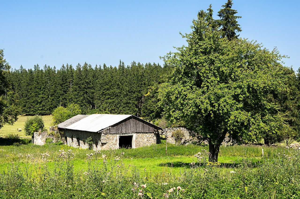 Pěkný pohled na tisícovku ze sedla Šeravy (VV 148c; 1061 m) od zemědělské usedlosti.