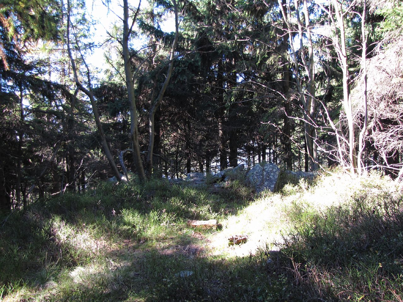 Pohled z vrcholu Signálu (VV 85a; 1175 m) přes balvany k severu.