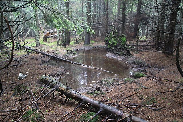 Nedaleko vrcholové skály na Struhadle (HLV 380; 1002 m) je zřejmě improvizovaná studánka.