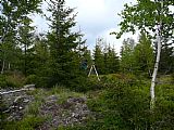 Světlinka na vrcholu Jelení hory (HLV 137; 1171 m) s geodetickým bodem.