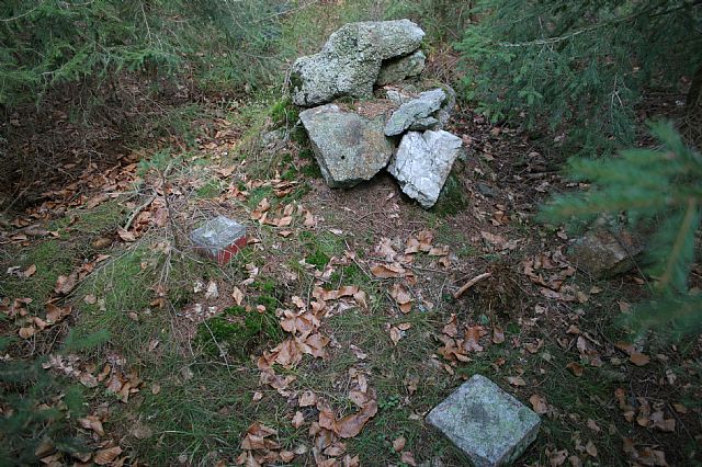 Na vrcholu Královského kamene (HLV 247; 1058 m) stával kovový kříž. Nyní z něj zbyla jen podpěra.