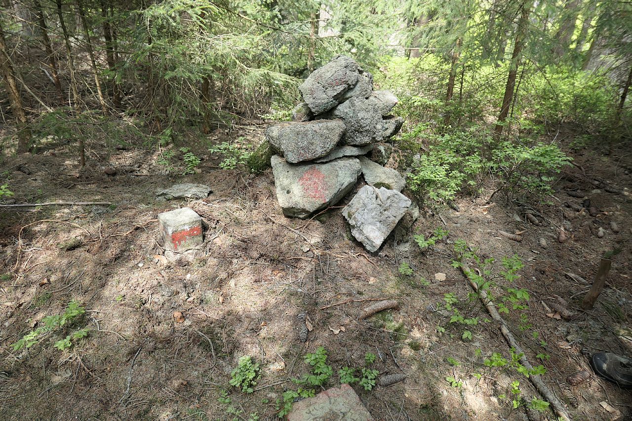 Geodetický bod a kamenná mohyla na Královském kameni (HLV 247; 1058 m).