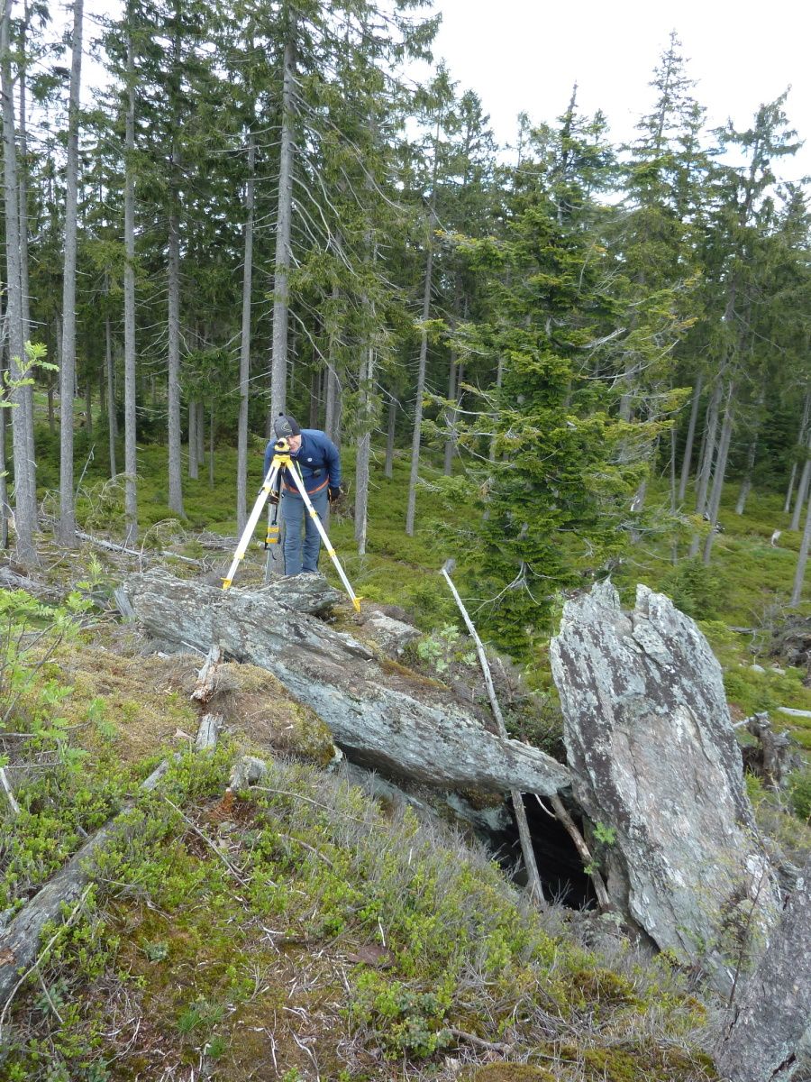 Stráž (HLV 55; 1307 m) - kamenný patník nedaleko geodetického bodu je hodně důkladně schován pod větvemi smrku. Takto vypadá po odhrnutí všech větví. :-)