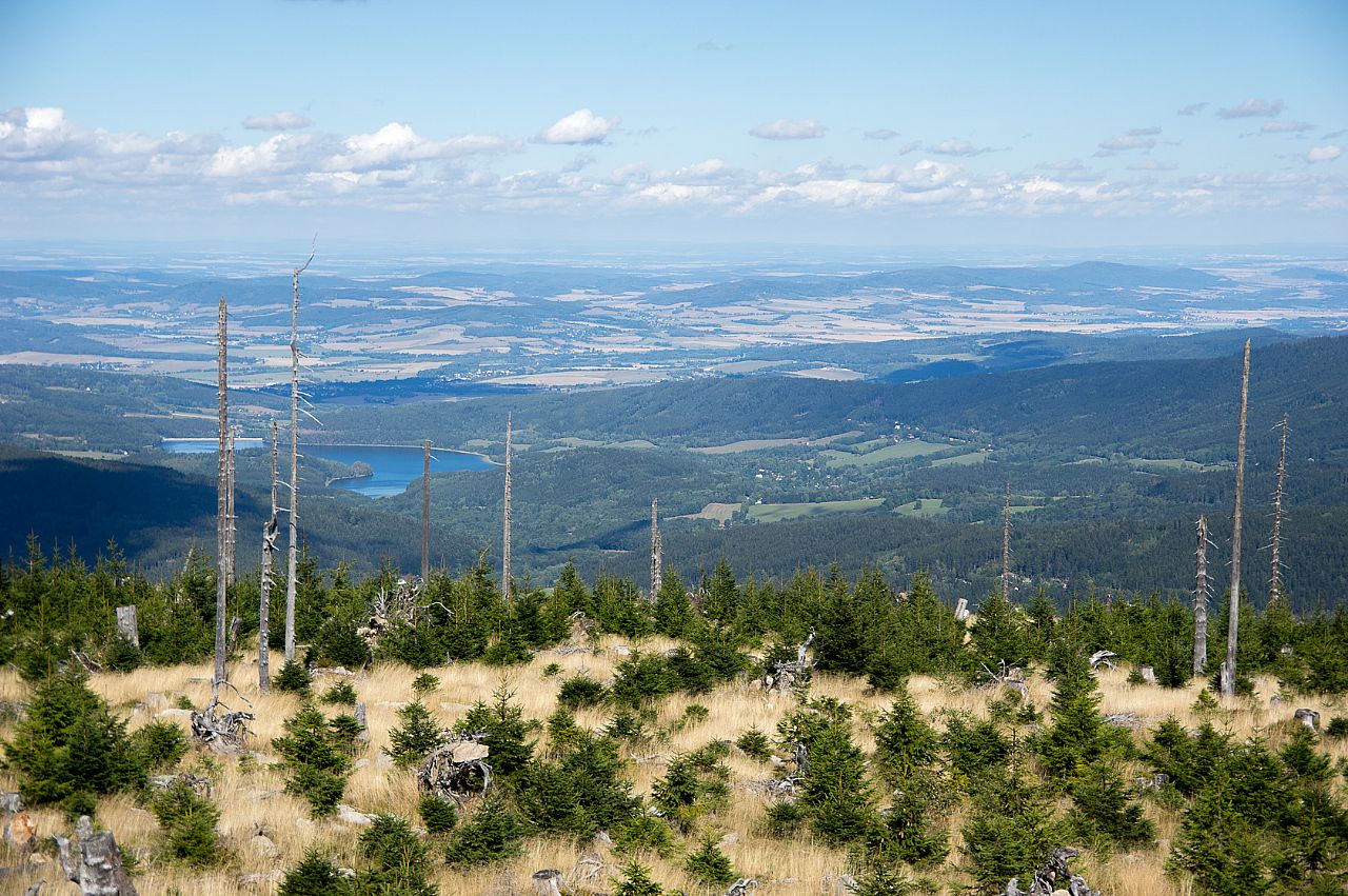 Výhled z tisícovky Koňský vrch (HLV 315; 1026 m) na hraniční hřeben.